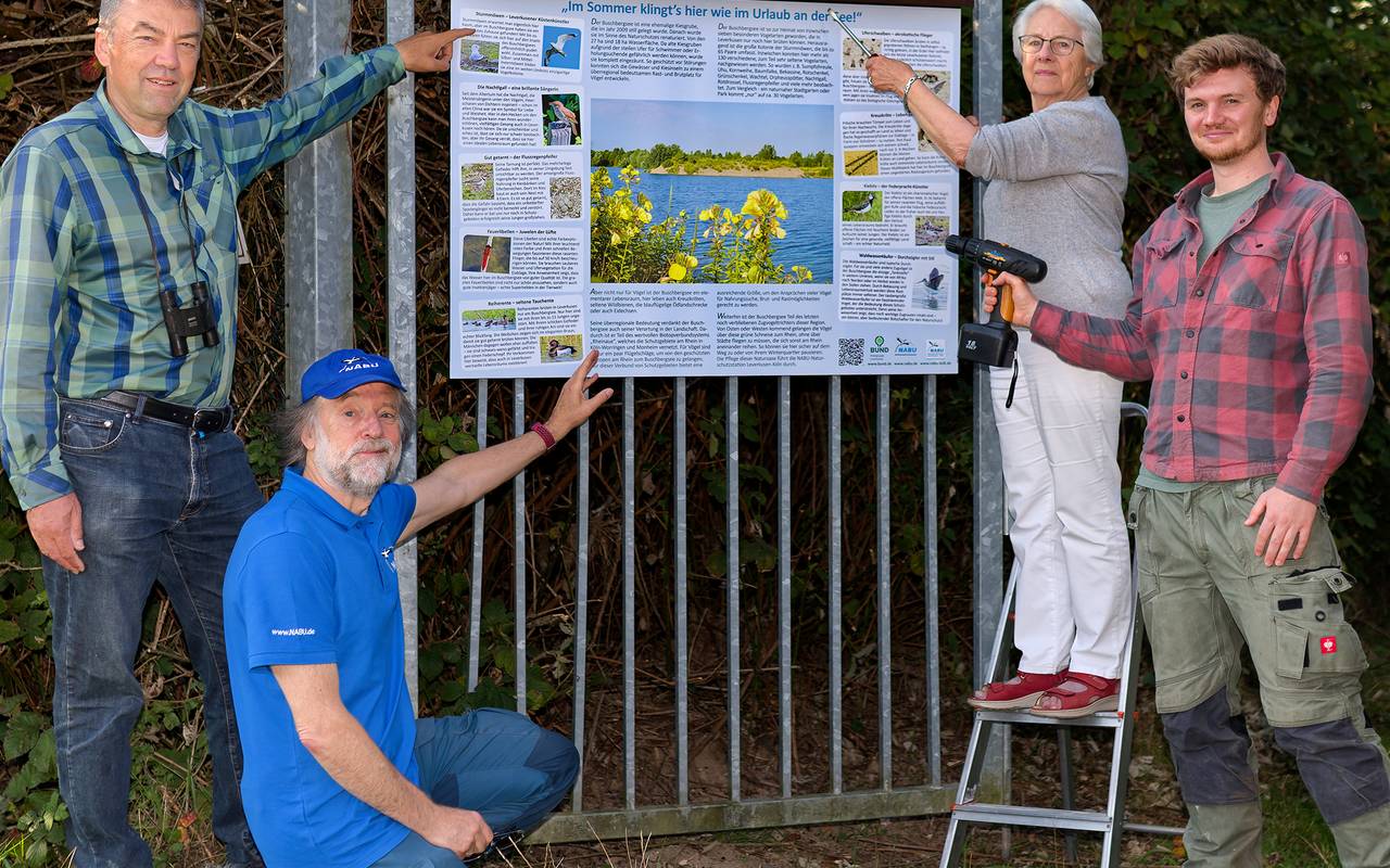 Vom Kiebitz bis zur Kreuzkröte – welche seltenen Tiere und Pflanzenarten es am Leverkusener Buschbergsee zu entdecken gibt, könnt ihr jetzt auf einem Hinweisschild dort nachlesen.