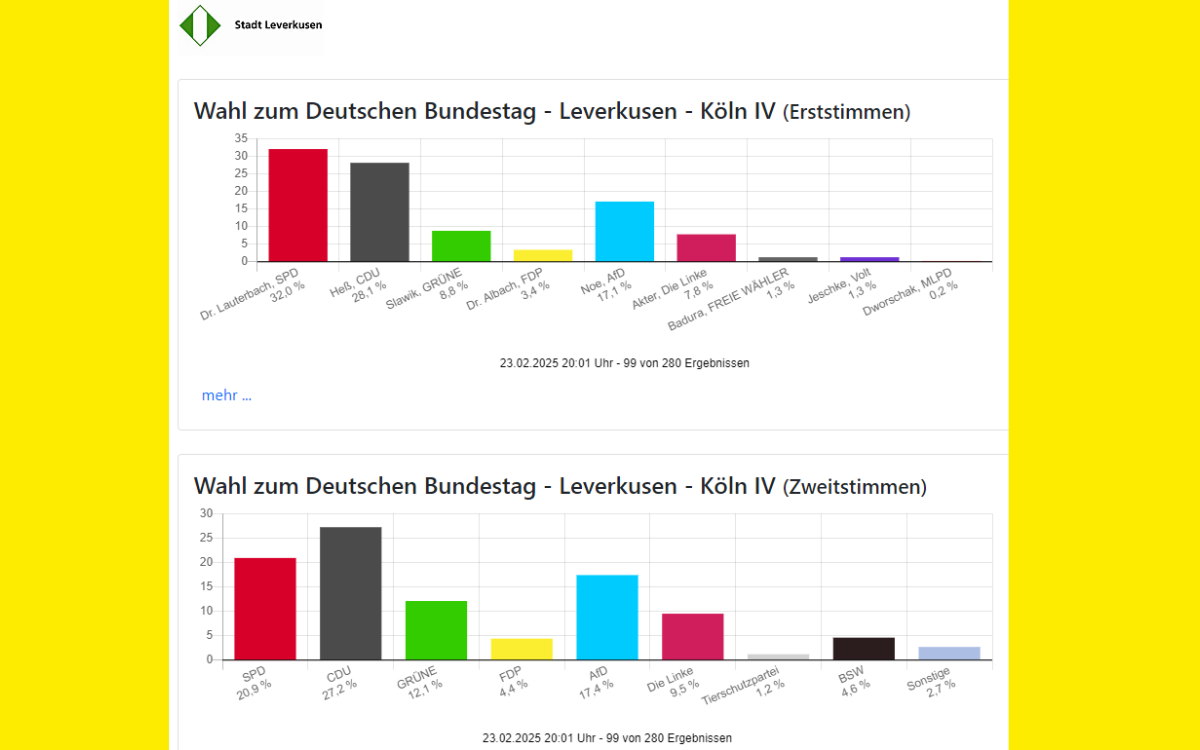 Bundestagswahl 2025 - CDU auch in Leverkusen vorne