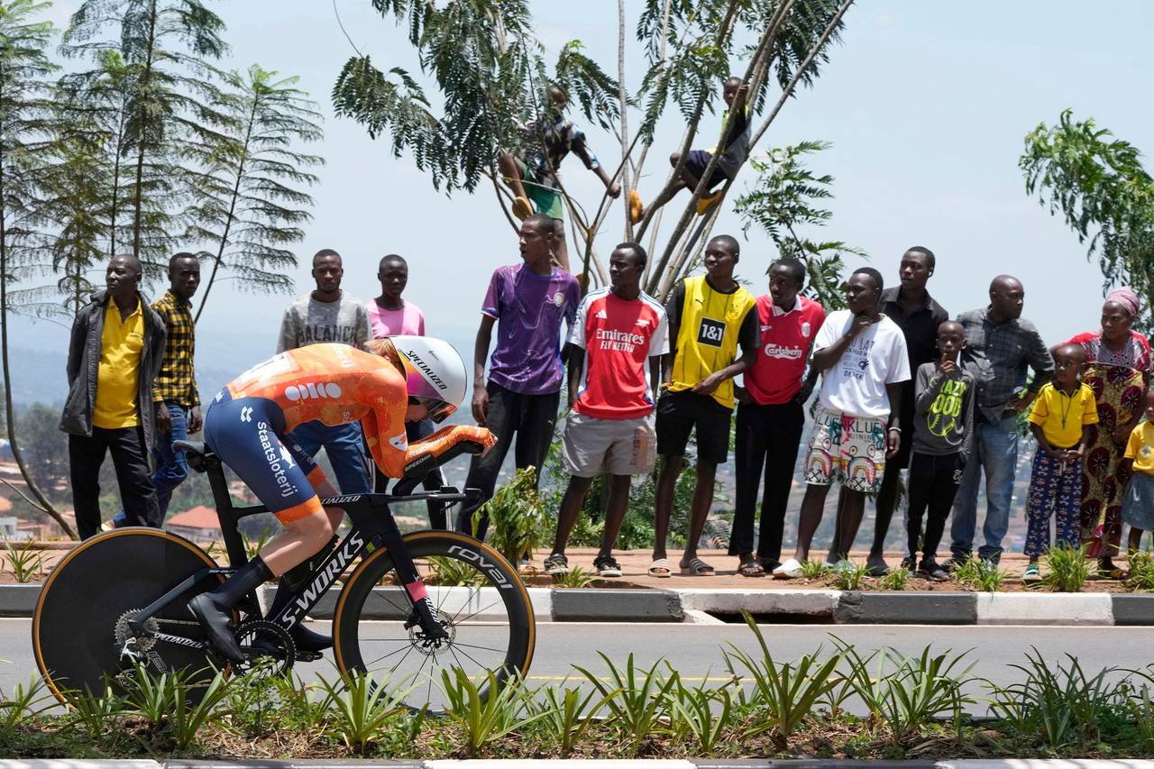 Auftakt der Rad-WM in Ruanda: Die Deutsche Antonia Niedermaier beim Einzelzeitfahren.© Jerome Delay/AP/dpa