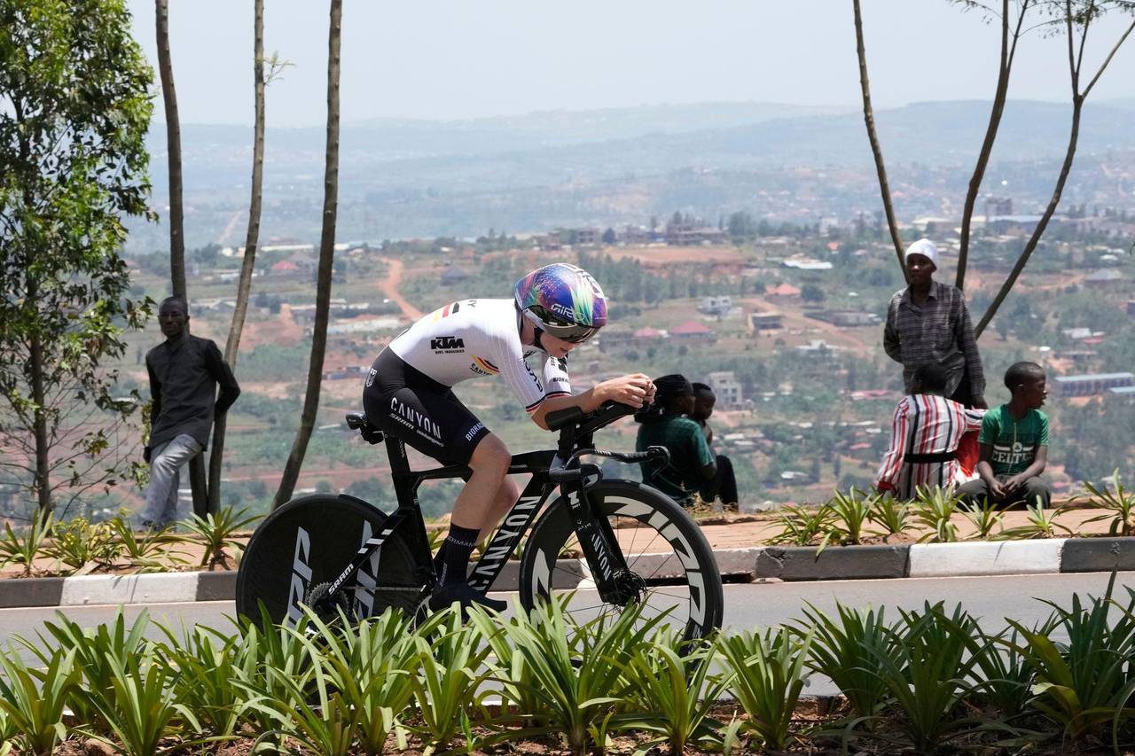 Nach dem 40,6 Kilometer langen Kurs beim Einzelzeitfahren rund um die hügelige Hauptstadt Kigali wurde Evenepoel mit einem Vorsprung von 1:14 Minuten Erster vor dem Australier Jay Vine und mit 2:36 Minuten vor Landsmann Ilan van Wilder. Pogacar verpasste Bronze knapp um etwa eine Sekunde. Miguel Heidemann, der einzige deutsche Starter, erreichte den 17. Rang.