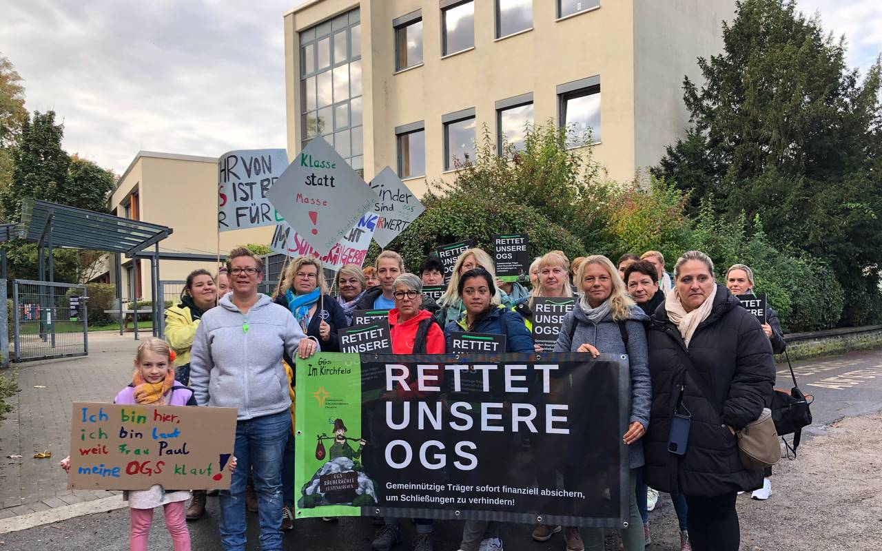 Leverkusener OGS demonstriert vor NRW-Landtag