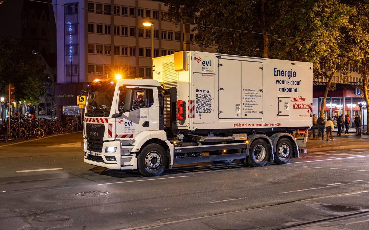 Ein Stromausfall kann für bestimme Einrichtungen ein Riesenproblem werden – zum Beispiel für Krankenhäuser. Für diesen Fall hat sich der Leverkusener Energieversorger EVL jetzt eine flexible Lösung überlegt: Ein riesiges, mobiles Notstrom-Aggregat.