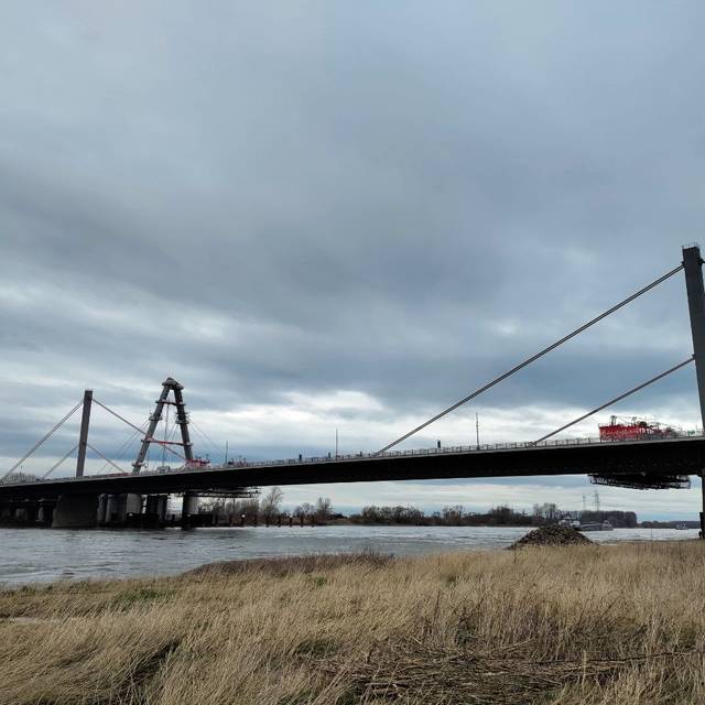 Der Rad- und Gehweg auf der alten Leverkusener Rheinbrücke bleibt während der Sperrung offen und passierbar.