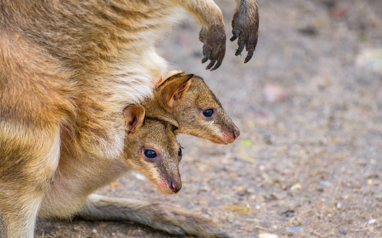 Im Zoo Duisburg ist mächtig was los. Bei den Flinkwallaby-Kängurus haben junge Zwillinge das Licht der Welt entdeckt. Zwillingsgeburten bei Beuteltieren sind selten.